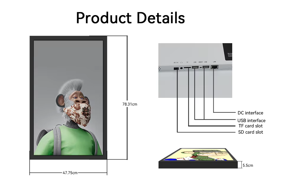 3.Simple Design: Ultra-Thin Thin LCD ကြော်ငြာစက်သည်ဖန်သားပြင်ကိုအကာအကွယ်ပေးသည့်ဖန်သားပြင်ပေါ်တွင်အခွံမာသီး,